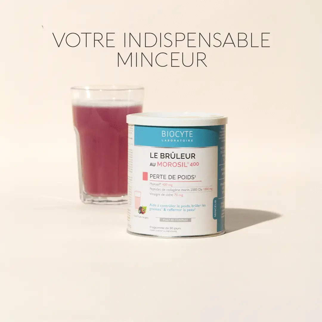 Le Brûleur au Morosil 400 de Biocyte est un complément alimentaire innovant conçu pour aider à contrôler le poids, brûler les graisses et raffermir la peau. Formulé avec deux actifs brevetés, Morosil® et Collagène PEPTAN®, ce produit offre une efficacité prouvée sur la perte de poids et la fermeté cutanée.